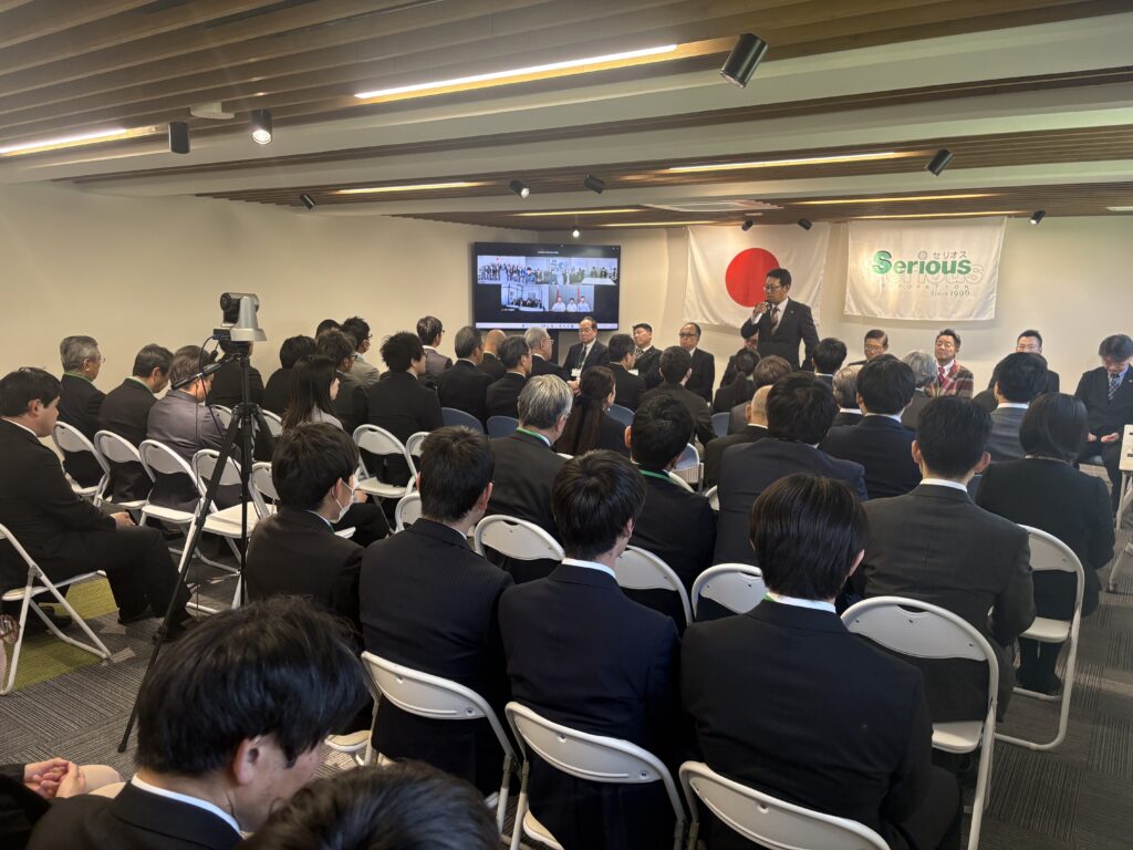 本年度は新卒採用2名、経験者採用7名、計9名の新しい仲間を迎えることができました。式典では、辞令交付や各種表彰、記念講演が行われ、新入社員の皆さんの緊張感の中にも希望に満ちた表情が印象的でした。